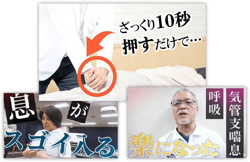 ぜひ、この無料映像をご覧になって、まずは家族・友人など…身近な方からやってみてください。アトピー・アレルギー症状のない方でも、腰が軽くなったり、呼吸のしやすくなるなどの効果が見込めますので、まずは一度試してみて、この手技の効果を実感してください。